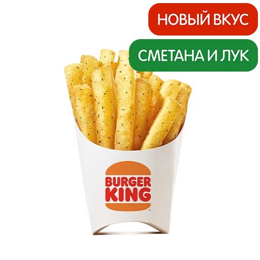 Вкусная тема! Наша фирменная картошечка – с «Вкусной штукой», нашей новой приправой со вкусом «Сметана и Лук». Чтобы перемешать Кинг Фри с «Вкусной штукой», используй приложенный бумажный Шейкер – это прикольно! Переложи в него картофель, засыпь приправу и хорошенько потряси. Будет пальчики оближешь!