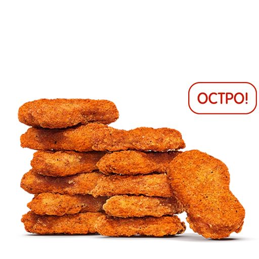 Острая тема! Легендарные наггетсы — с «Острой штукой», нашей новой приправой с огоньком. Чтобы перемешать закуски с «Острой штукой», используй приложенный бумажный Шейкер — это прикольно! Переложи в него наггетсы, засыпь приправу и хорошенько потряси. Будет хот!