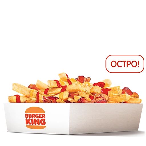Острая тема! Обновили рецептуру: в щедрую порцию картофеля фри под жгучим томатным соусом добавили ароматного бекона, хрустящего лука и сырного соуса!